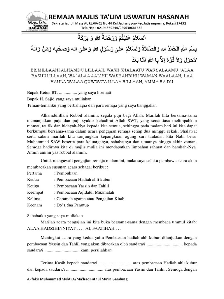 Teks sederhana mc/pembawa acara tahlilan yang paling sering digunakan auto pd se. Download teks pembawa acara tahlilan dalam bahasa jawa download document. Contoh teks mc pembawa acara tahlilan pada kesempatan ini kami akan berbagi contoh teks. Translate may 04 2021 mc acara tahlil. Demikan sekedar contoh kata sambutan tuan rumah kepada jamaah taziah .